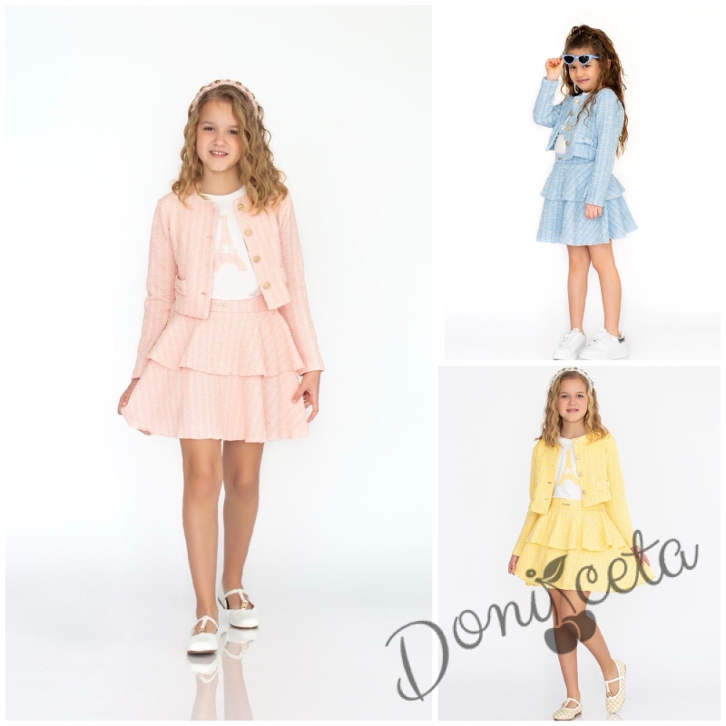 Комплект за момиче от 2 части-пола и сако с дълъг ръкав в жълто