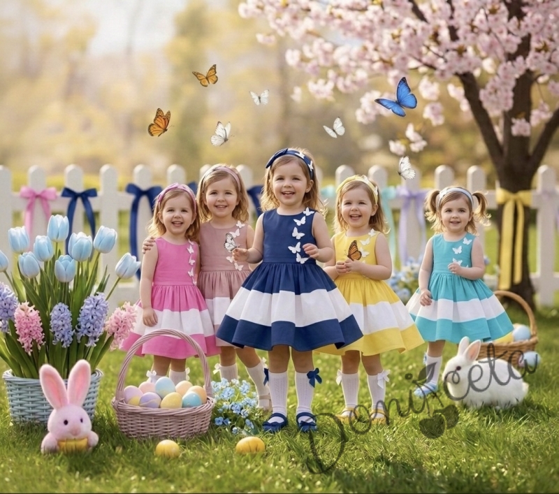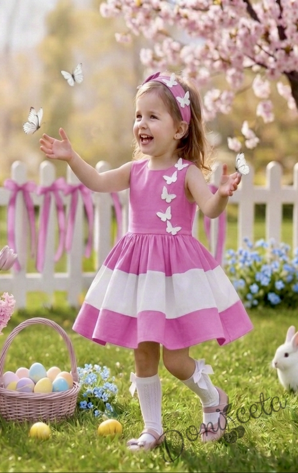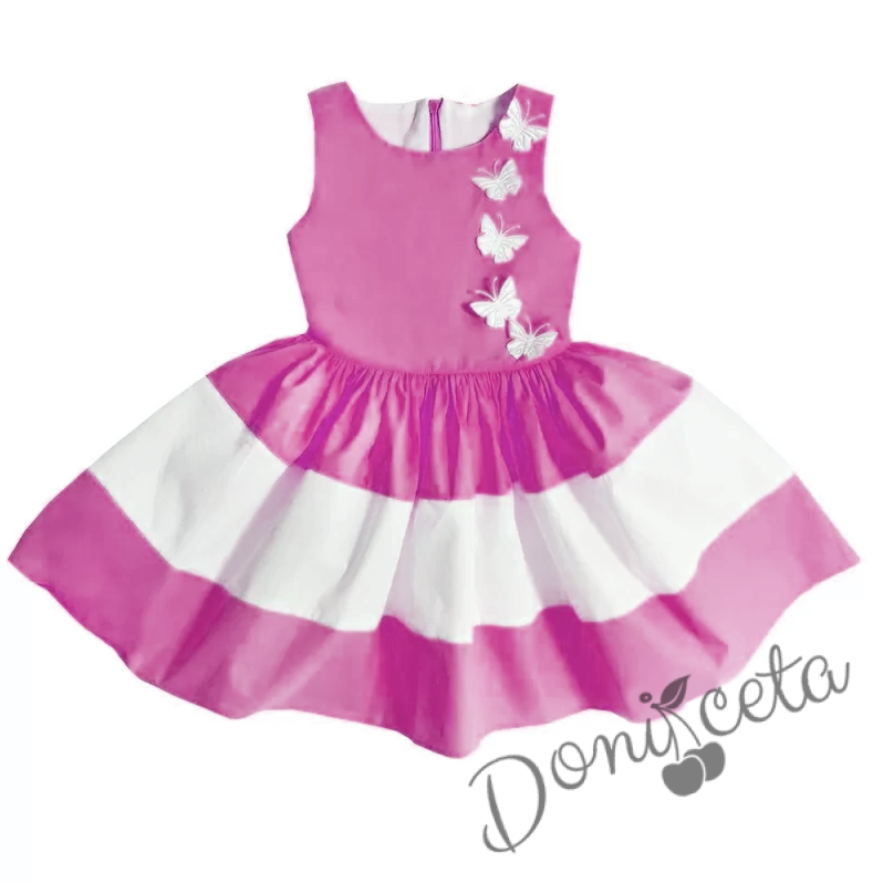 Официална или ежедневна детска рокля в циклама и бяло с 3D пеперуди Далента