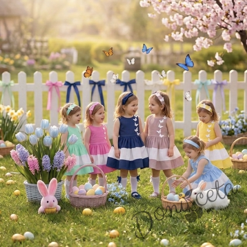 • Изключително стилна детска рокля в пепел от рози и бяло с 3 D пеперуди.
