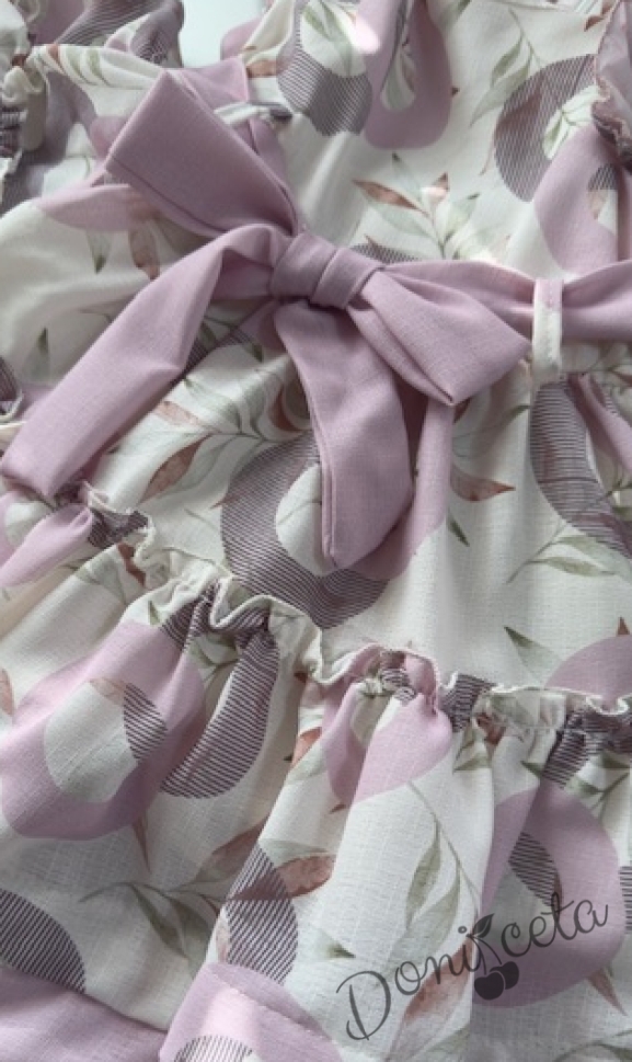 Детска рокля в екрю с флорален принт в розова пудра