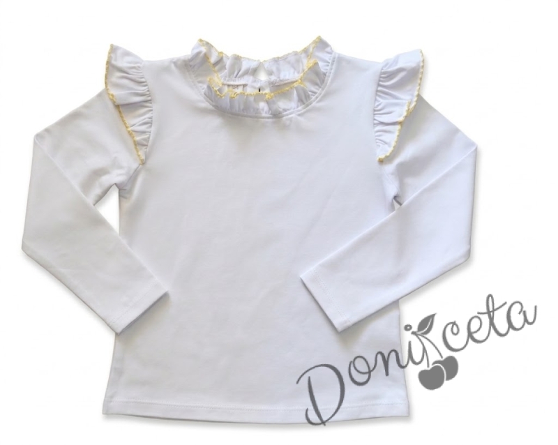 Комплект от 2 части-детска туту пола пачка в жълто и блузка с дълъг ръкав в бяло с къдрички на рамената и бието с жълт кант