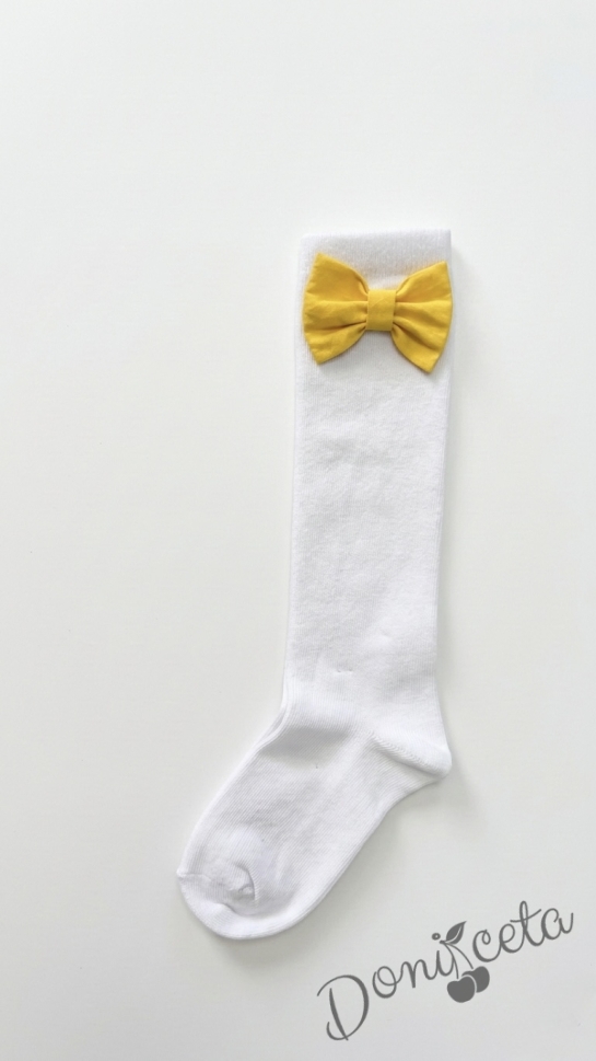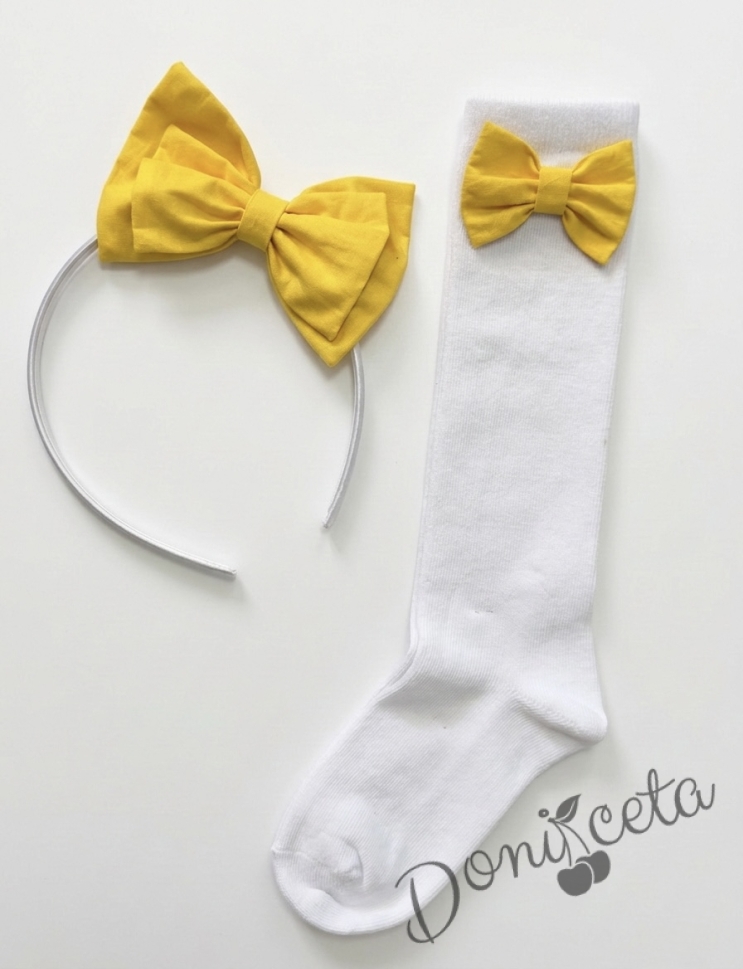 - Комплект от чорапки и диадема, който се състои от ръчно изработена диадема и чорапки с панделки в жълто.