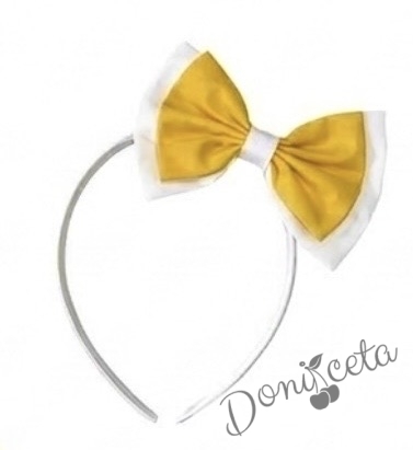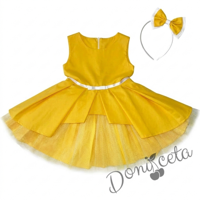 Детска рокля Надежда в жълто с тюл и диадема за коса в бяло и жълто