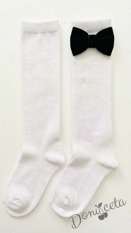 Детски чорапи в бяло до коляното с черни панделки