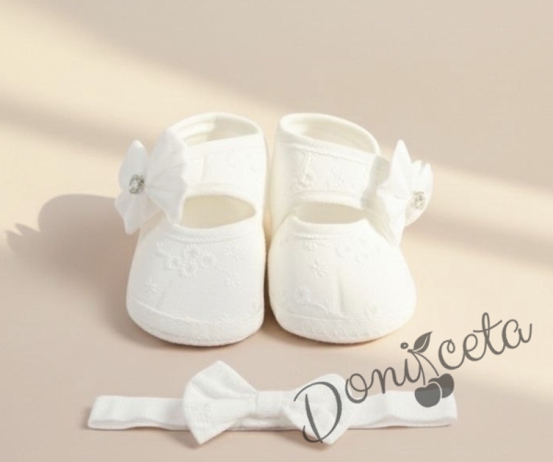 Бебешки комплект от бебешки буйки и лента за коса в бял цвят