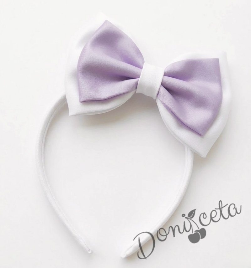 Начало МОМИЧЕТА Комплект от детска рокля в пепел от рози и бяло с 3D пеперуди Далента с диадема и чорапки
