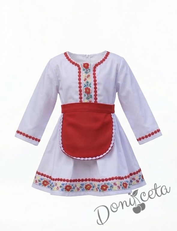 - Красив памучен фолклорен комплект за момиче от пола, риза и престилка с етно мотиви.