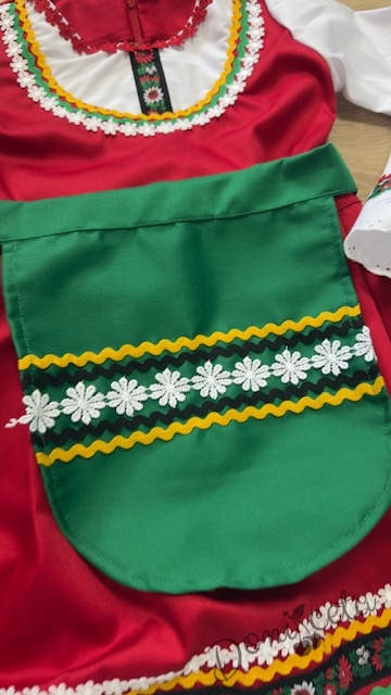 Дамска или детска народна носия 24-сукман и престилка в зелено с фолклорни/етно мотиви