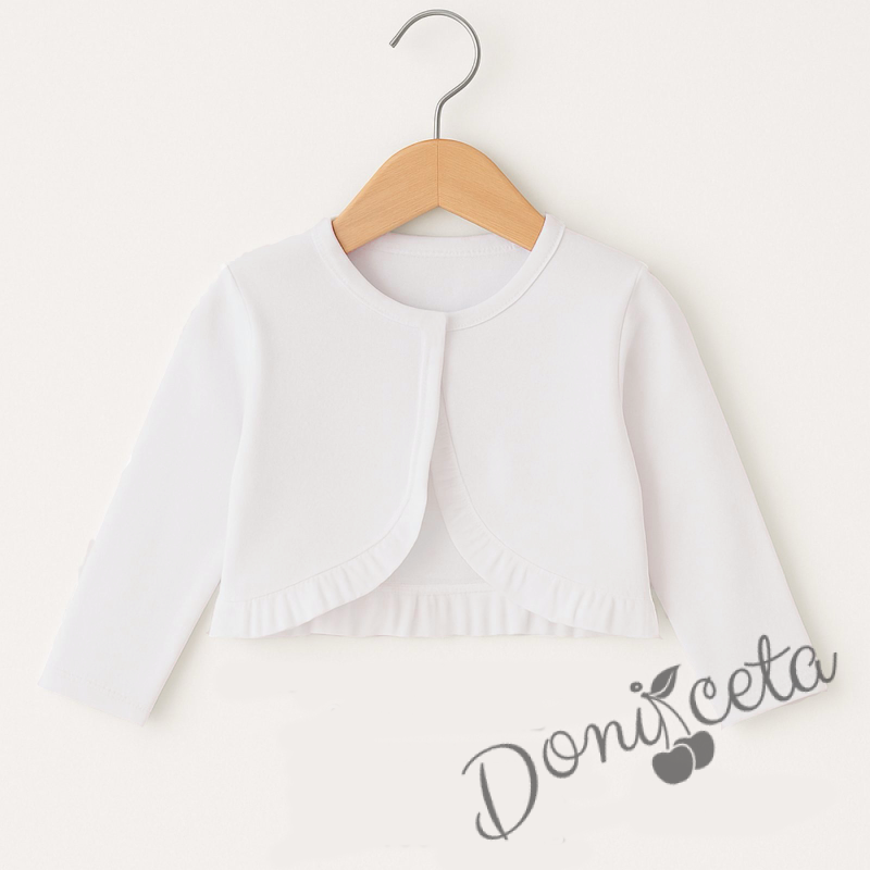 Ежедневна памучна детска лятна рокля в бяло на дупчици с къдрички и харбала