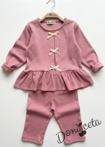 Начало МОМИЧЕТА Детски релефен комплект за момиче с дълъг ръкав в пепел от рози Елизабет