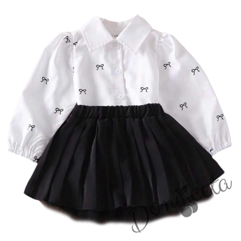 Комплект за момиче от риза в бяло с черни панделки и плисирана пола в черно Габи