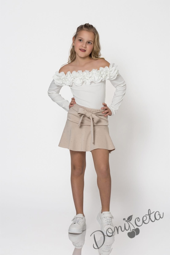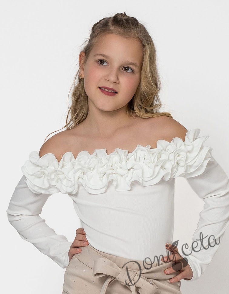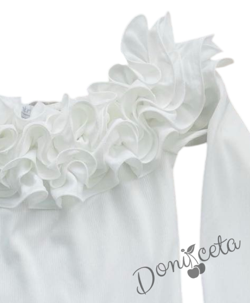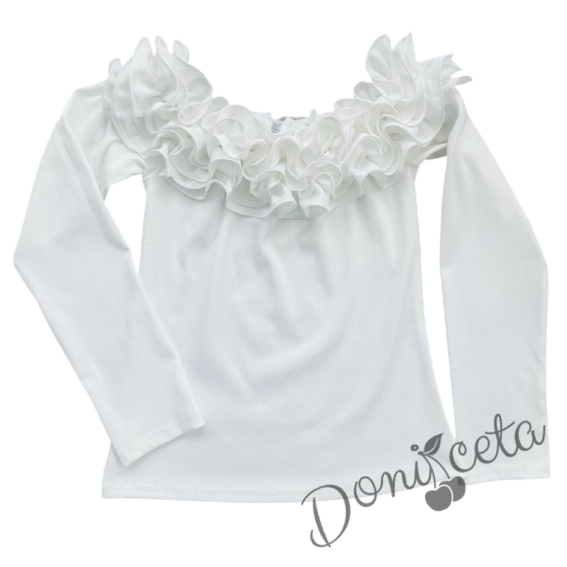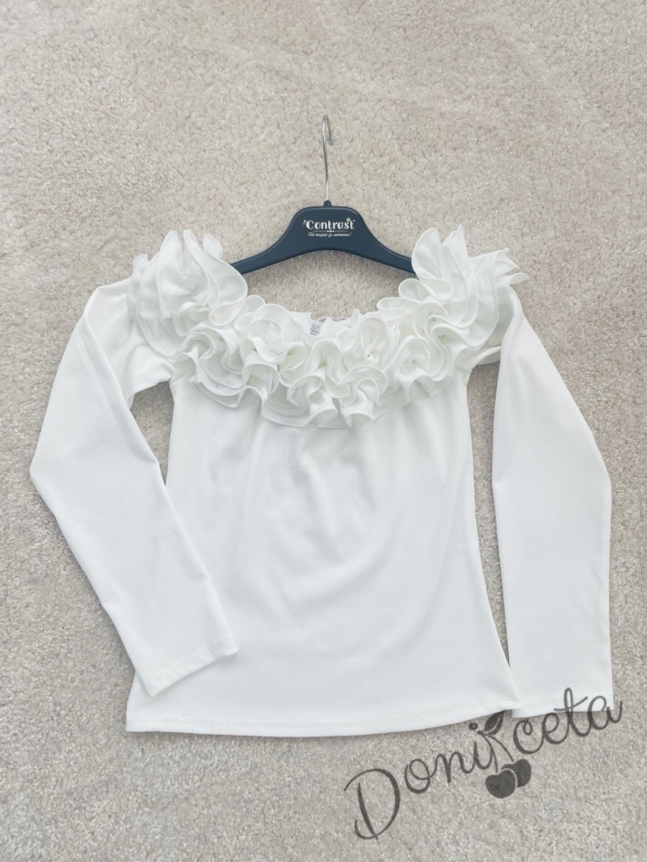 Детска блуза за момиче с дълъг ръкав с ефектно деколте с къдрички