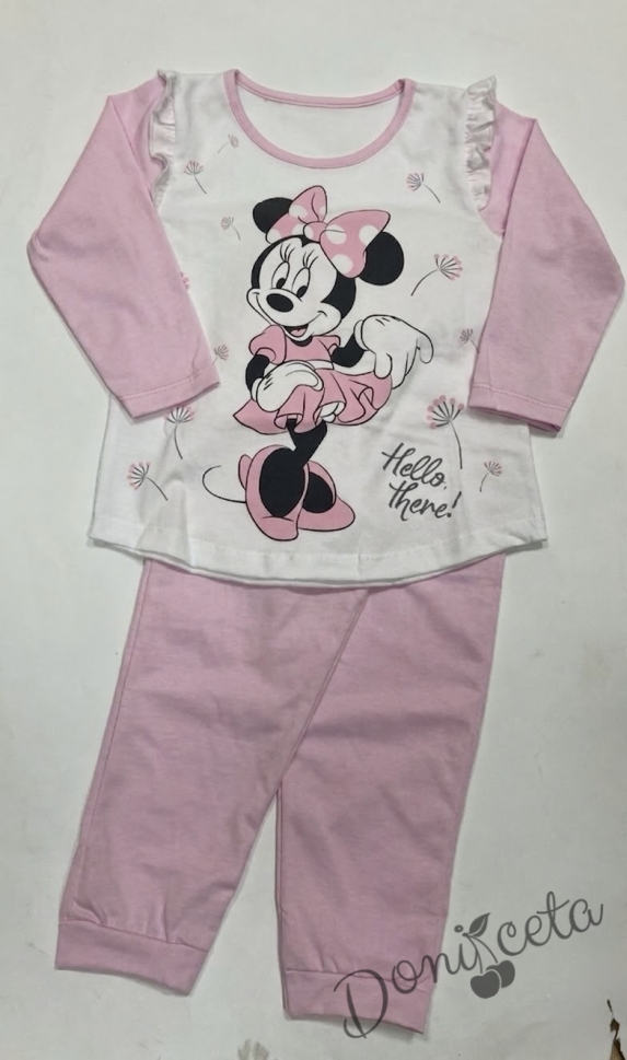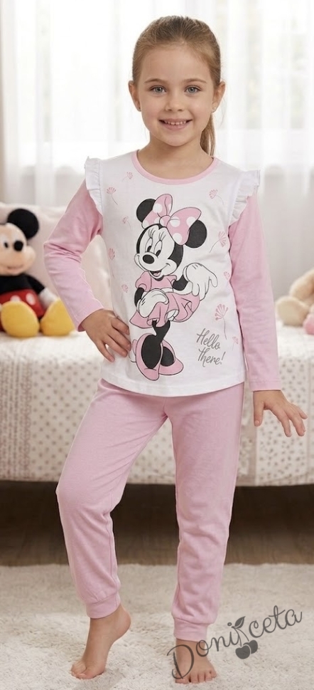 Детска пижама за момиче в бяло и светлорозово с Мини Маус