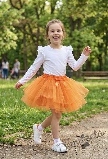 Много весела детска пола пачка в оранжев цвят. Поличката е с памучна подплата и много добре се съчетава с потник в бяло със сърце от жълти къдрички. Виж свързани продукти по-долу! Произход: България