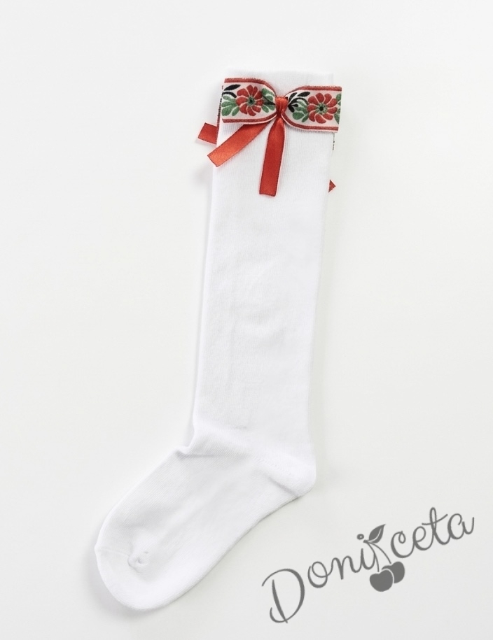 Ръчно изработени чорапи с фолклкорни и етно мотиви в бяло и червено