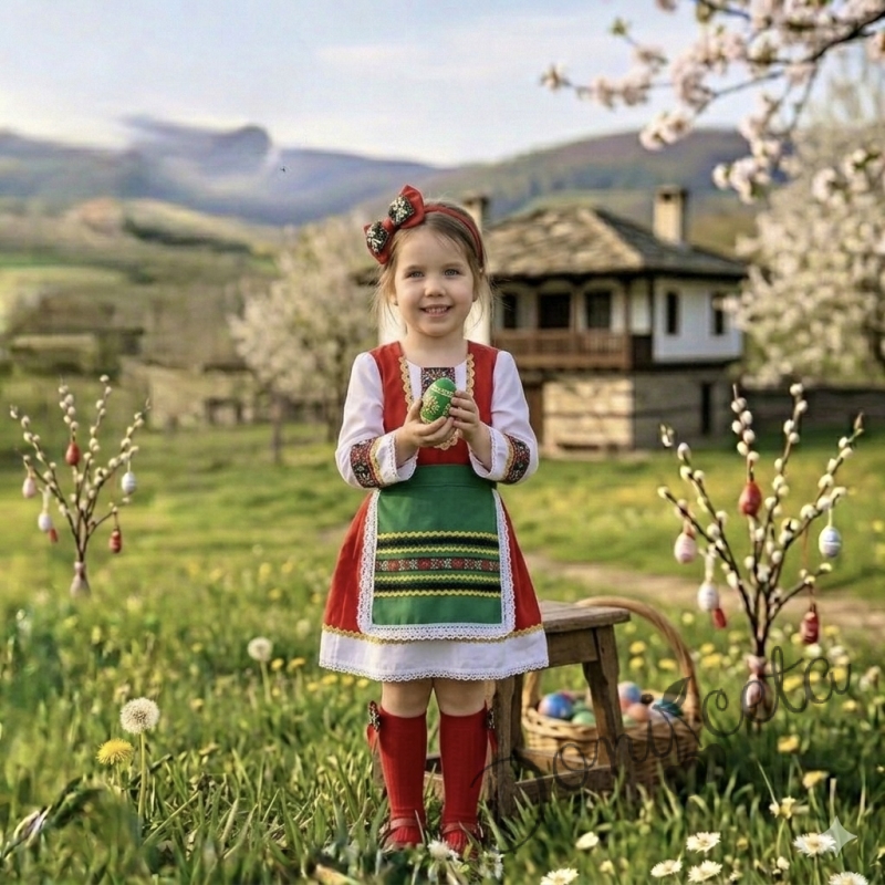 Тази рокля е перфектна за коледни тържества, училищни представления, Лазаровден, Цветница и други.
