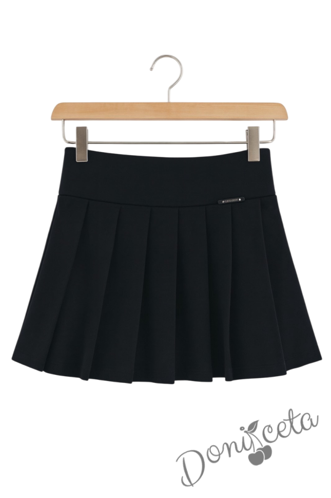 Комплект за момиче от 2 части - пола Тамара в черно и риза с къс ръкав и къдрички в бяло