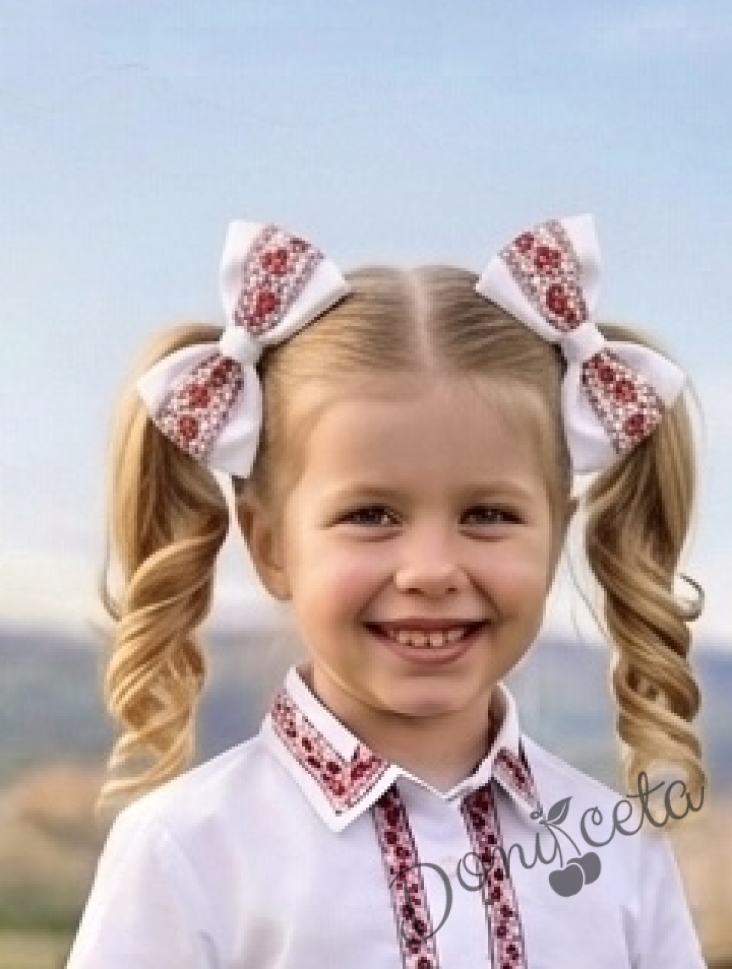 Начало МОМИЧЕТА Комплект 2 броя панделки с фиби в бяло с етномотиви