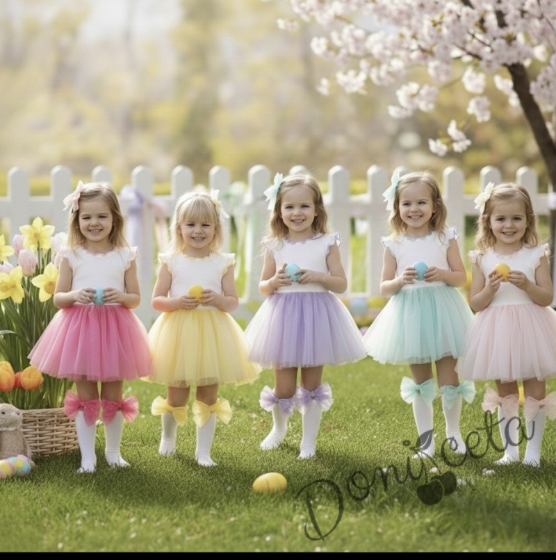 Завършекът на тази прекрасна рокля е долната част от тюл, която придава допълнителен обем и фееричен вид. Вашата малка принцеса ще се чувства като истинска балерина!