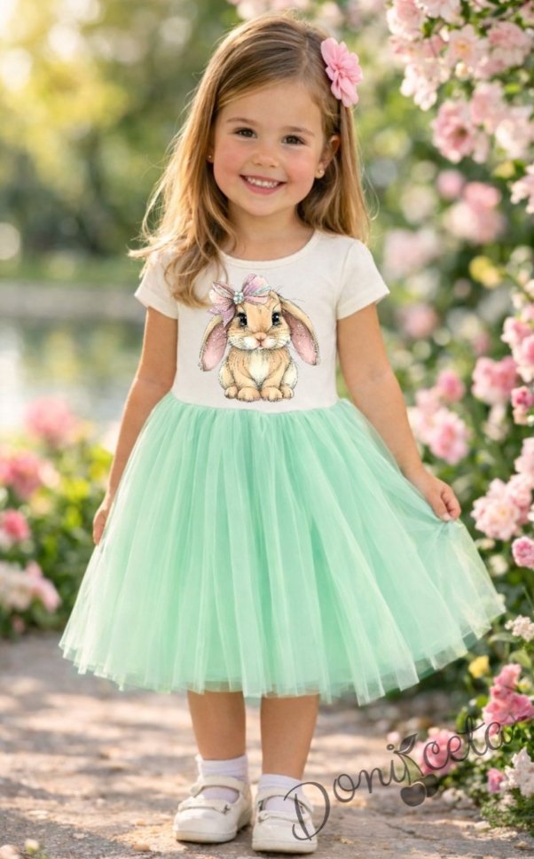 Начало МОМИЧЕТА Бебешка или детска рокля в мента с зайче