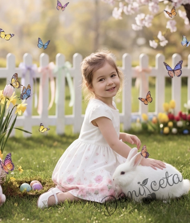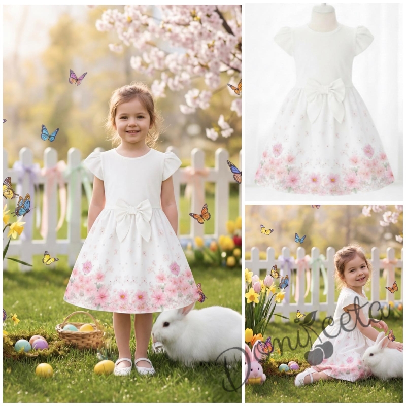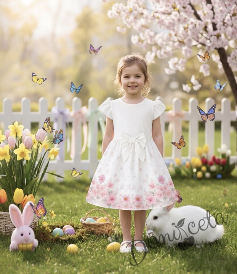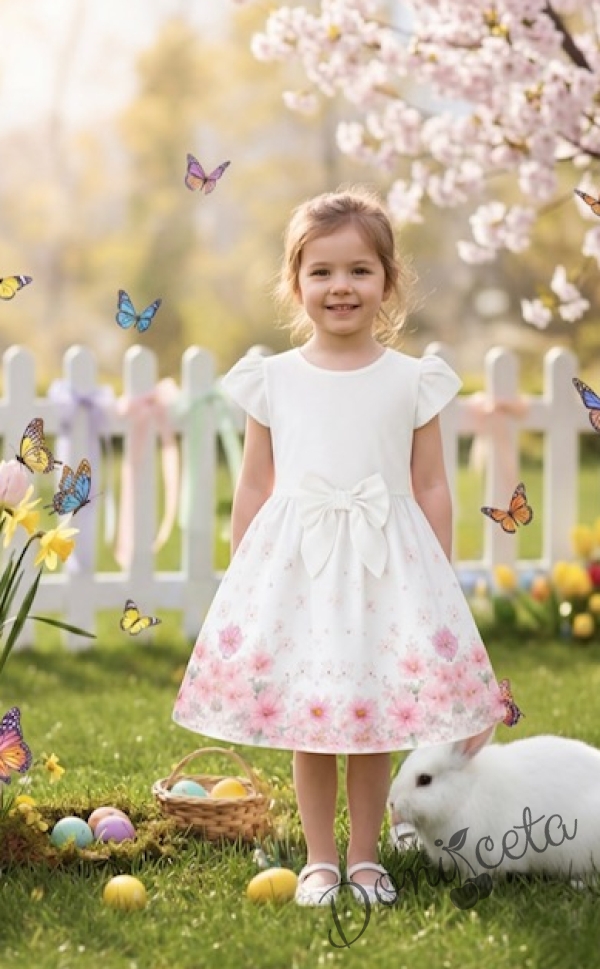 Детска ежедневна рокля в екрю и нежно лилав цвят с флорални мотиви