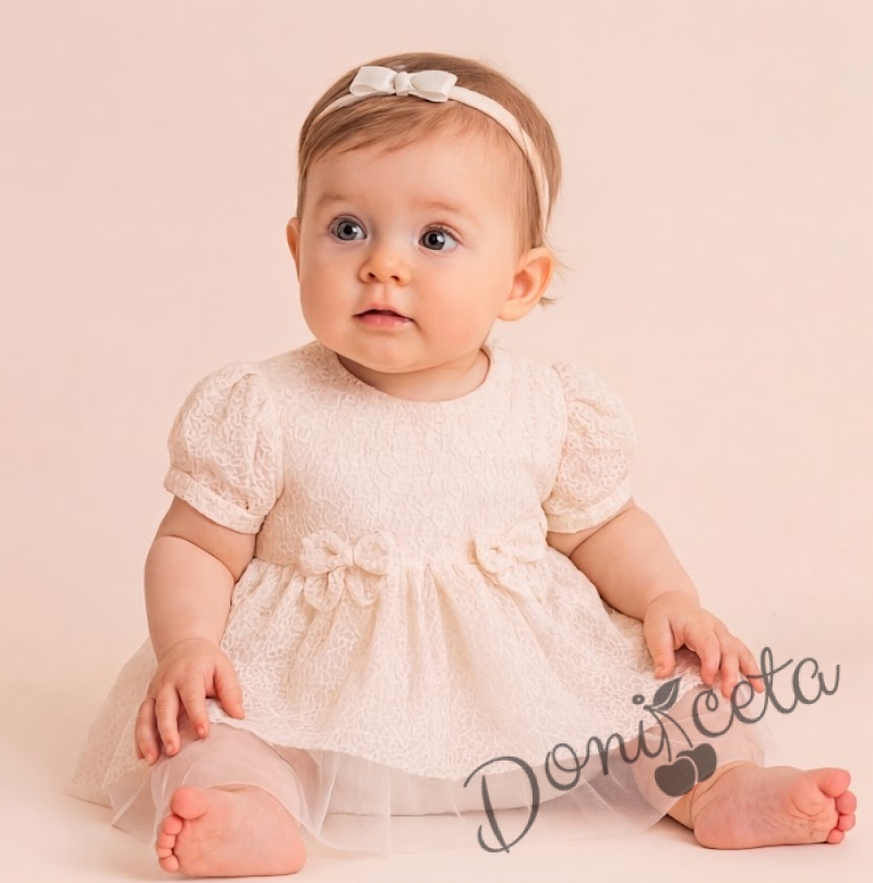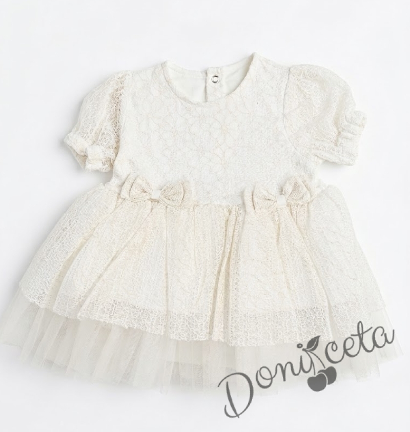 Бебешка рокля в екрю с нежна бродерия и панделки