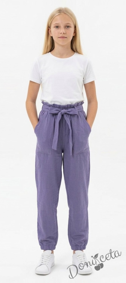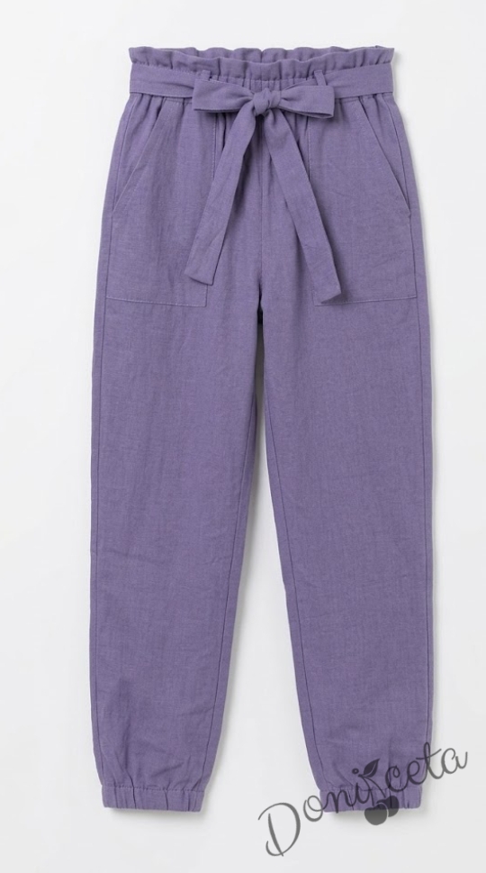 Очарователен лилав детски панталон, специално създаден за малките дами! С висока талия и елегантен колан, този панталон предлага не само стил, но и комфорт през целия ден. Идеален за всякакви поводи – от игри в парка до специални събития.