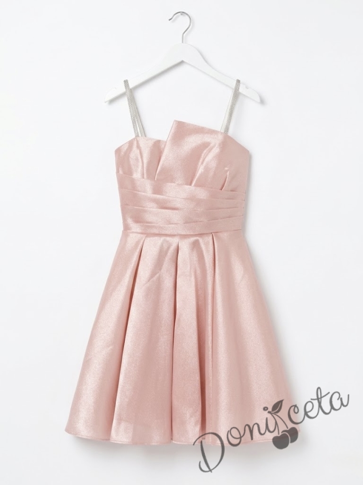 Елегантна къса официална детска рокля Лара с асиметрично деколте в пепел от рози