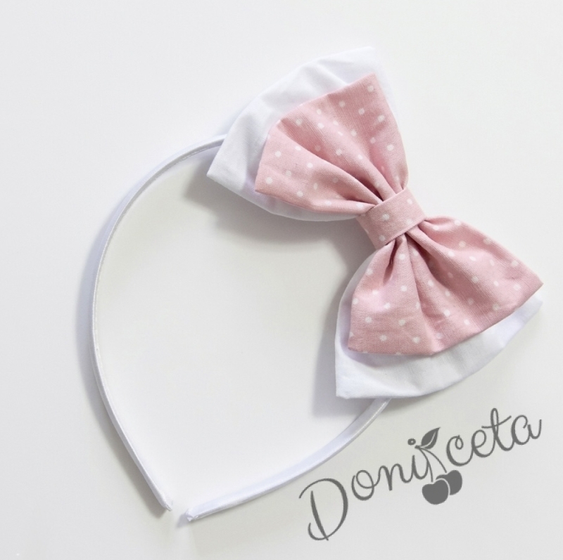 Ръчно изработена диадема в бяло и розово на бели точки
