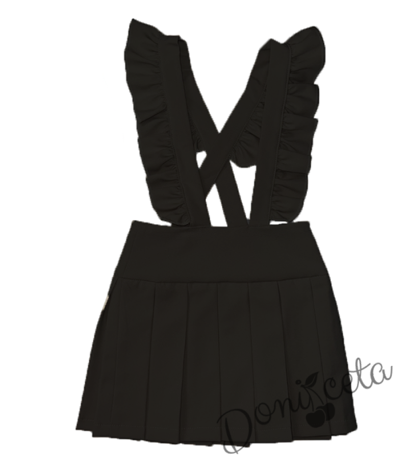 Комплект от 2 части за момиче - плисиран сукман Калина с къдрички от плат, блузка в бяло с къс ръкав с панделка и къдрички Contrast