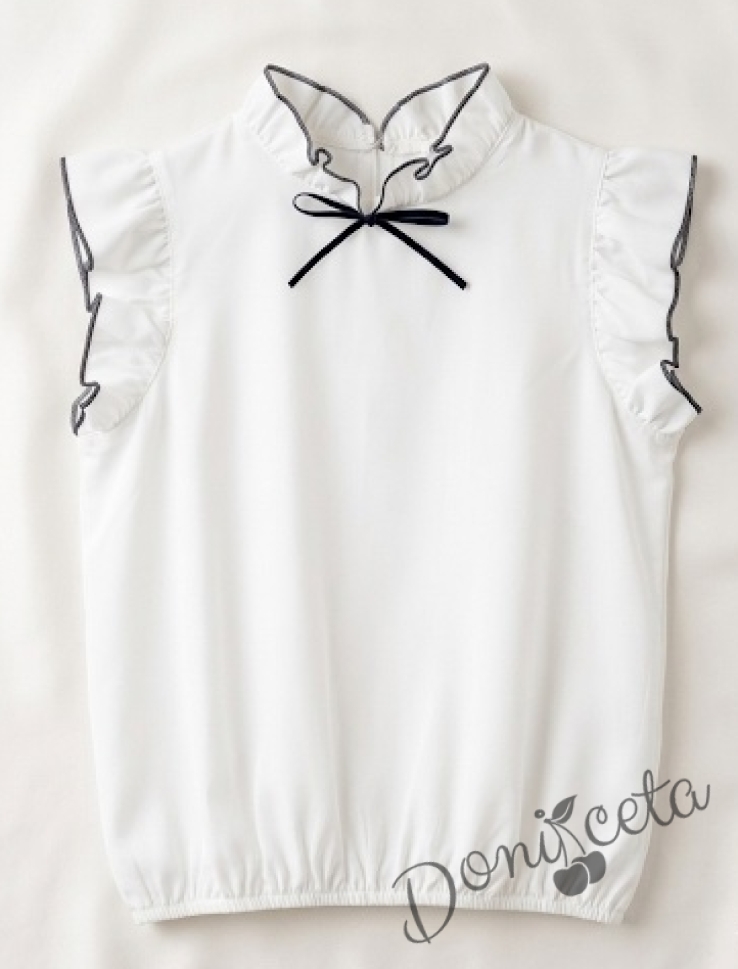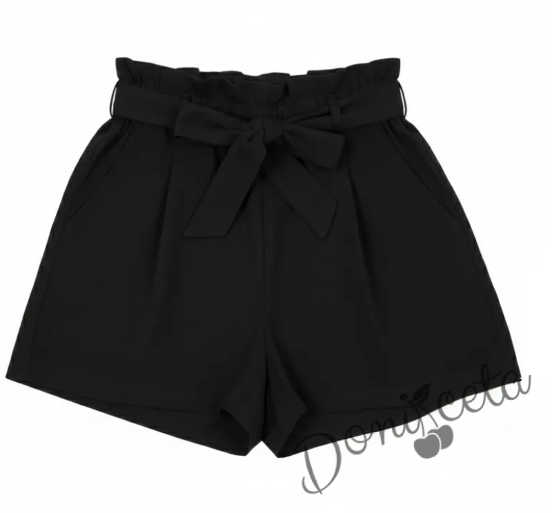 Комплект от 2 части- къси панталони в черно с ластик и колан и блузка в бяло с къс ръкав и къдрички Contrast