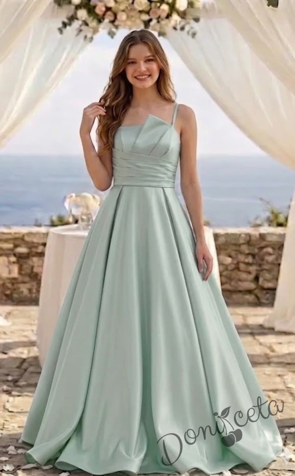 Дълга официална детска рокля Лара с асиметрично деколте в зелено