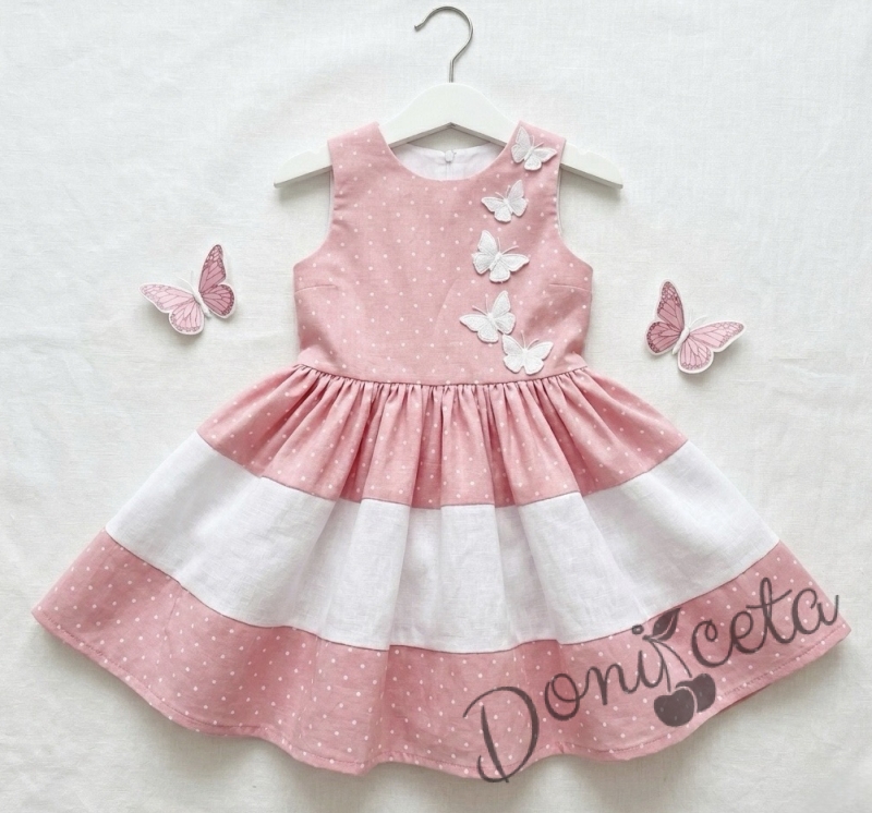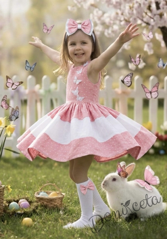 Начало МОМИЧЕТА Детска официална памучна рокля в розово на бели точки Далента