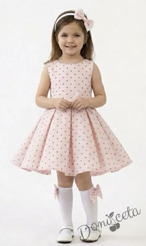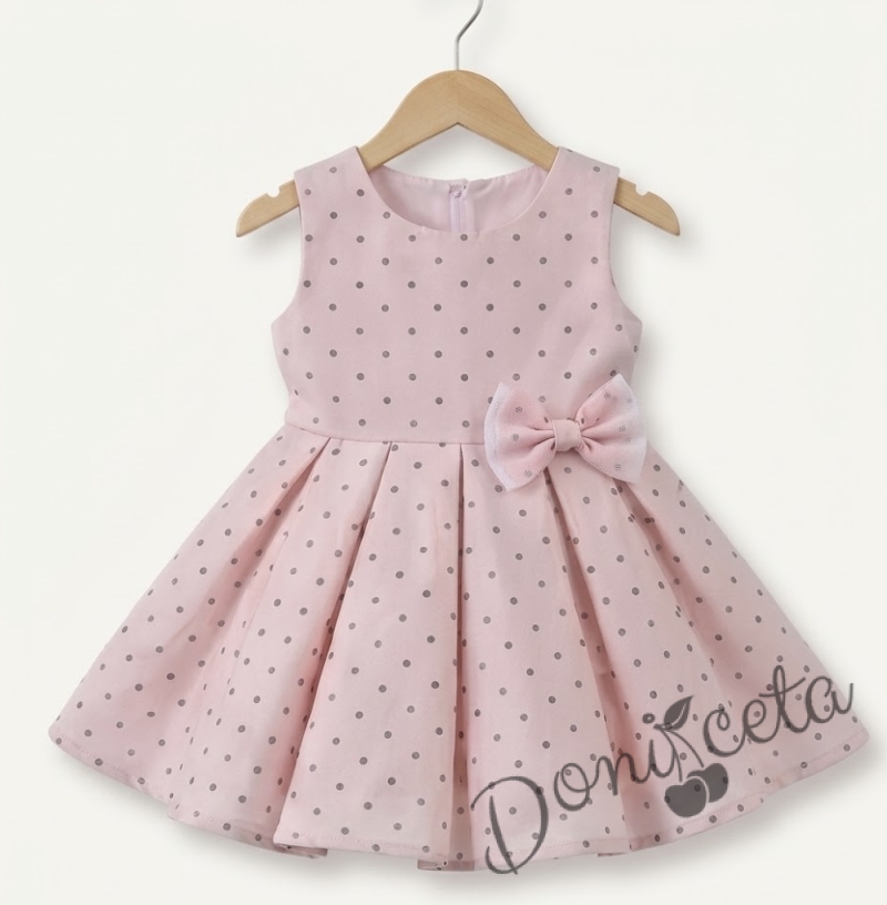 Официална или ежедневна детска/бебешка рокля в розово на точки тип клош Вилина