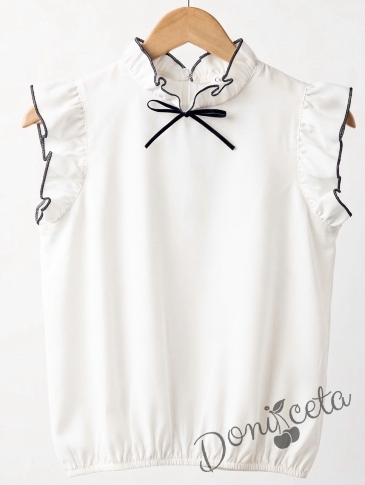Детска риза за момиче в бяло с къс ръкав и къдрици в черно Contrast