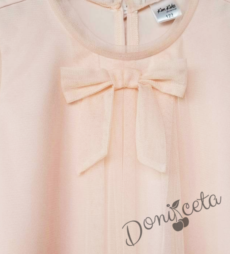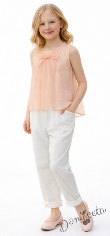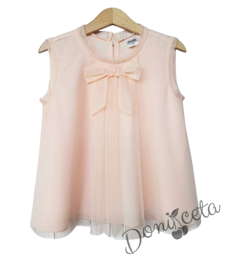 Детска блуза без ръкав в цвят пудра с панделка за момиче Вая