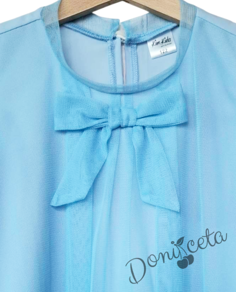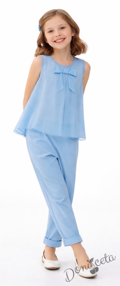 Детска блуза без ръкав в светлосиньо с панделка за момиче Вая