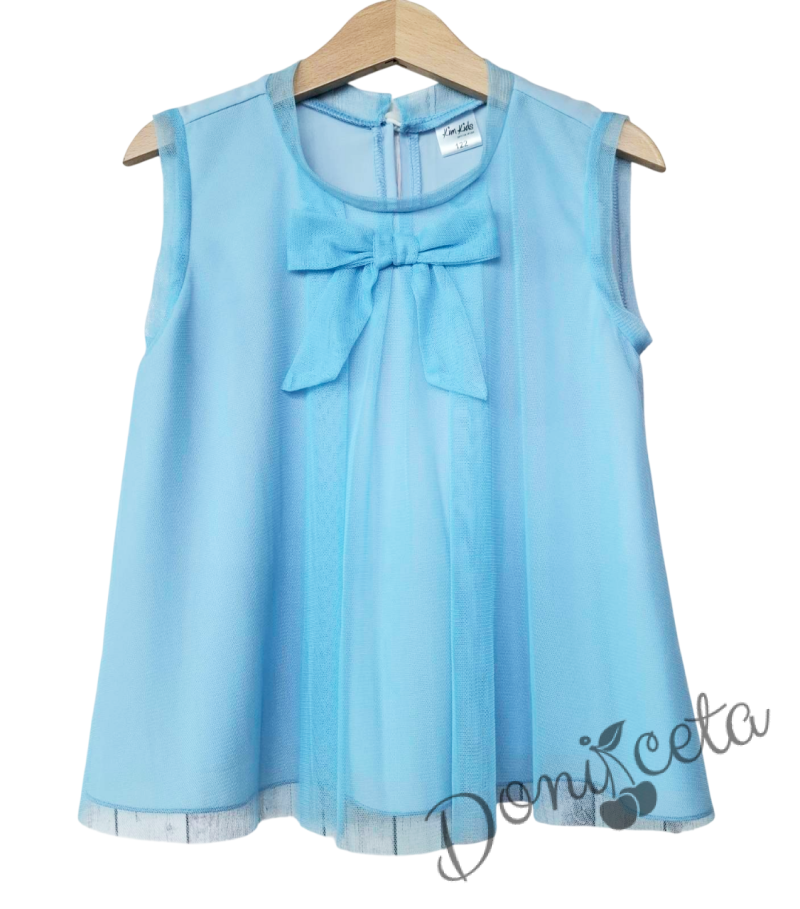 Начало МОМИЧЕТА Детска блуза без ръкав в светлосиньо с панделка за момиче Вая