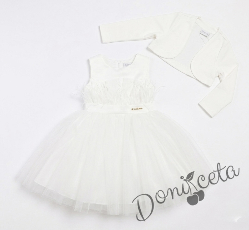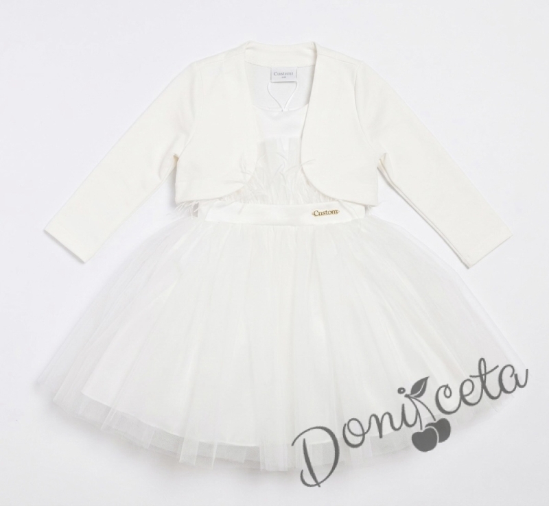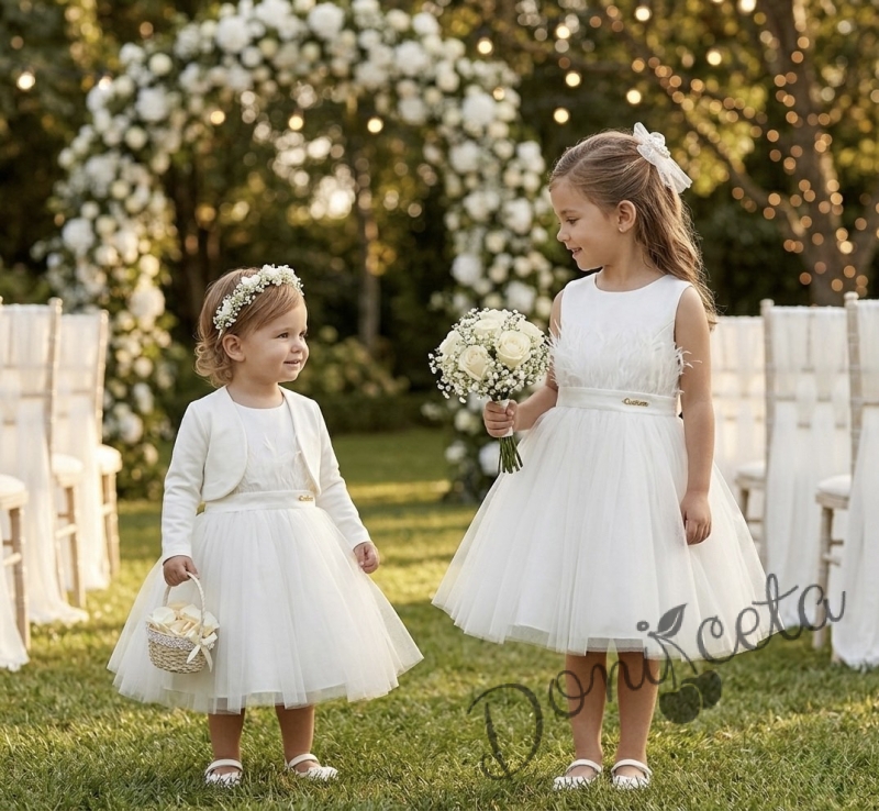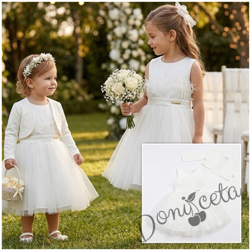 Комплект от официална детска рокля Анелия без ръкав с тюл и болеро от плата на роклята