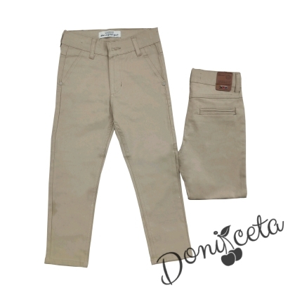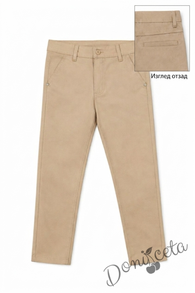 Комплект за момче от 3 части - тениска и риза в бяло и панталон в бежово