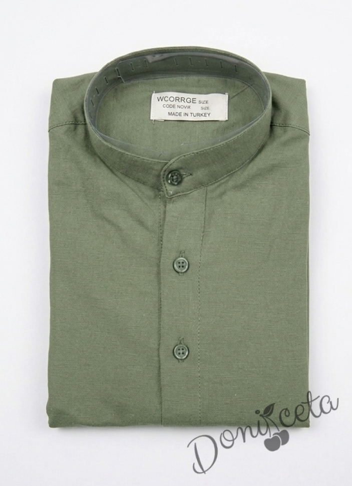 Детска риза с дълъг ръкав за момче в зелено без яка