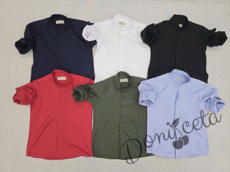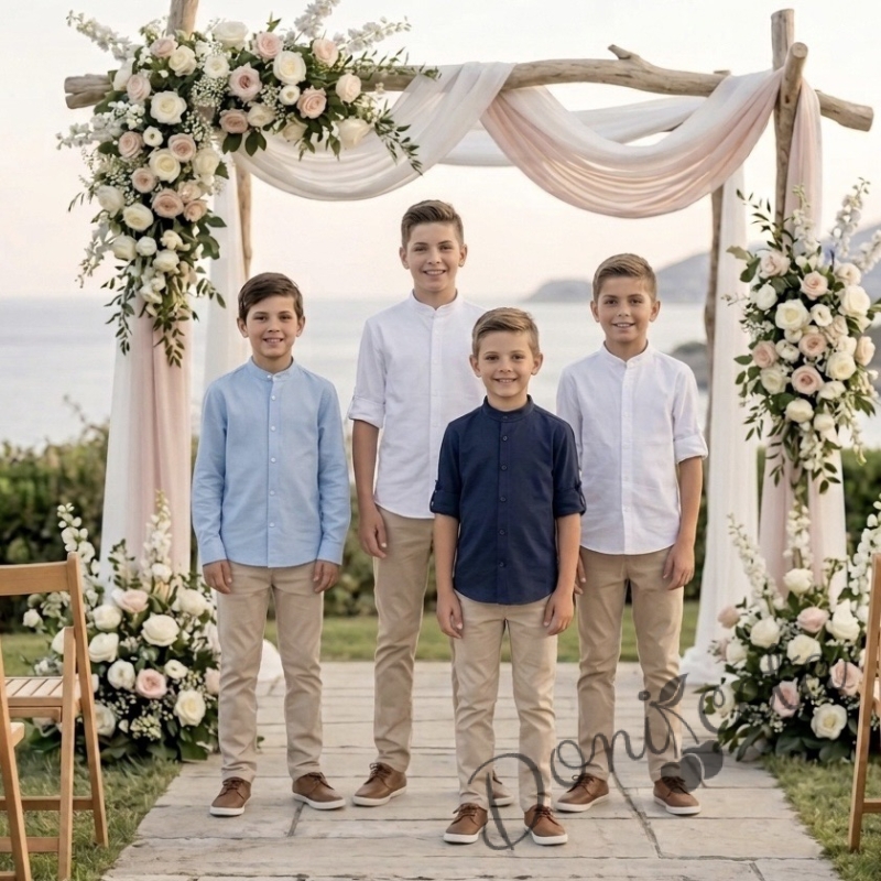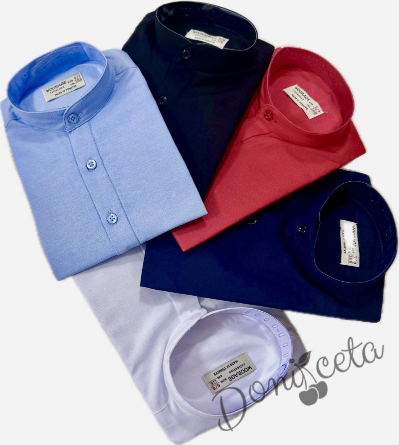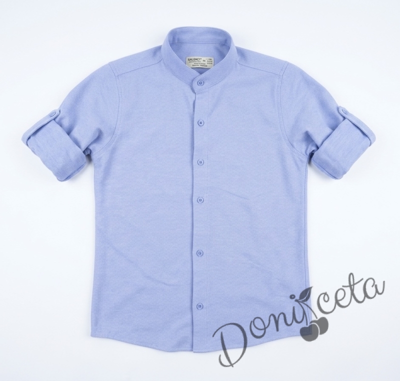 Официална детска риза с дълъг ръкав без яка в светлосиньо