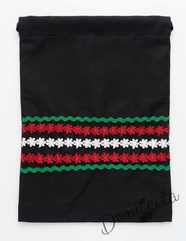 Детска народна престилка в черно с фолклорни етно мотиви за момиче 4778