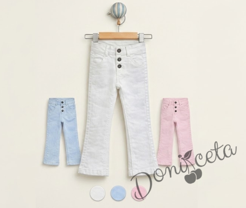 - Детски дънки тип чарлстон с висока талия в розов цвят.