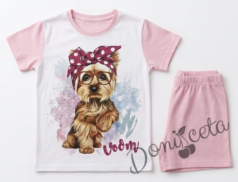 Детска пижама с къс ръкав в розово за момиче с йорки