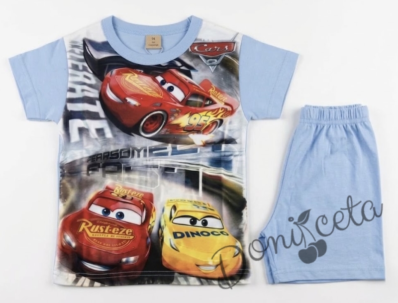 - Памучна пижама за момче с къс ръкав в син цвят с коли.