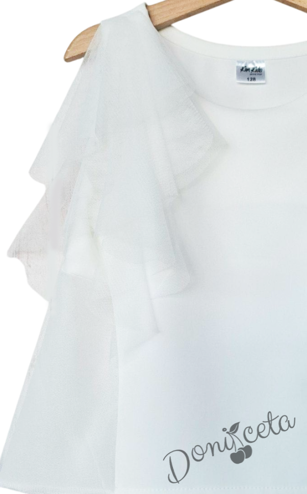 Детска туту пола в екрю от тюл и бляскав еластичен колан в сребристо Касиди