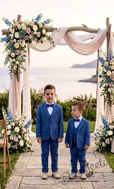 Представяме ви този елегантен син костюм, създаден специално за малки джентълмени. Този изискан комплект ще превърне всяко момче в звездата на събитието!