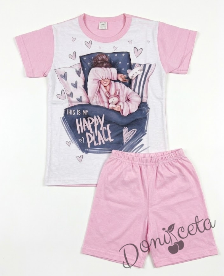 Детска пижама с къс ръкав в розово за момиче