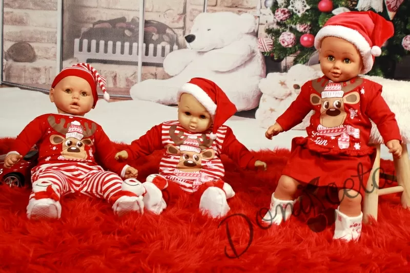 Много весел коледен комплект от три части. Комплектът включва боди, панталонки и шапка.